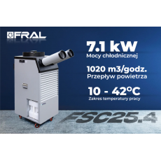 Klimatyzator przenośny FRAL FSC25 to jedyne w swoim rodzaju urządzenie do zastosowań przemysłowych, zaprojektowane oraz wykonane z najwyższej klasy komponentów we Włoszech przez lidera branży klimatyzacyjnej firmy FRAL Srl. Klimatyzatory FRAL FSC25.4 to jedyne takie urządzenie, które znajdzie swoje zastosowanie wszędzie tam gdzie instalacja klimatyzacji tradycyjnej jest niemożliwa lub jej wykonanie jest zbyt kosztowe.